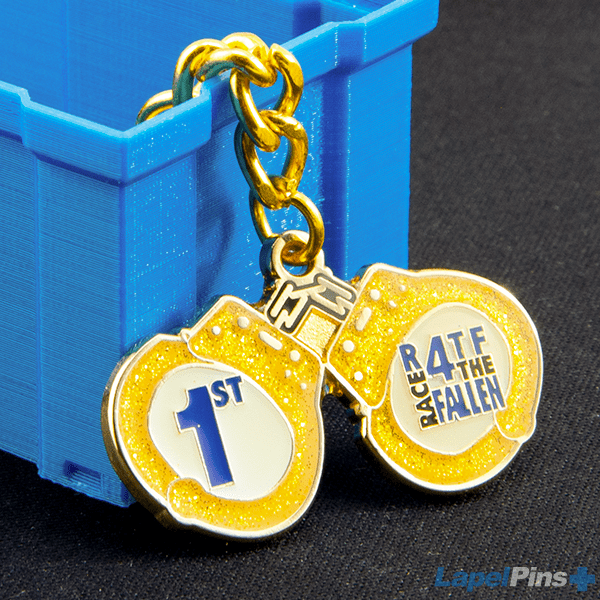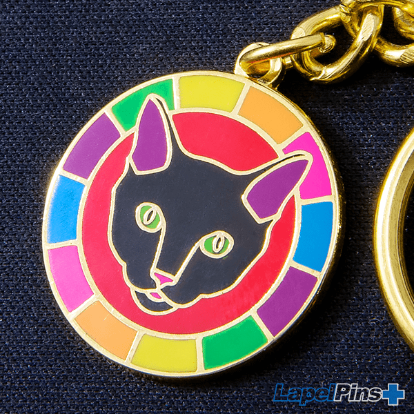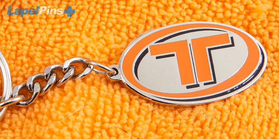 Keychains manufactured using the Cloisonne process offer a unique look because your design is not simply overlaid onto the keychain it is imprinted into the metal base.