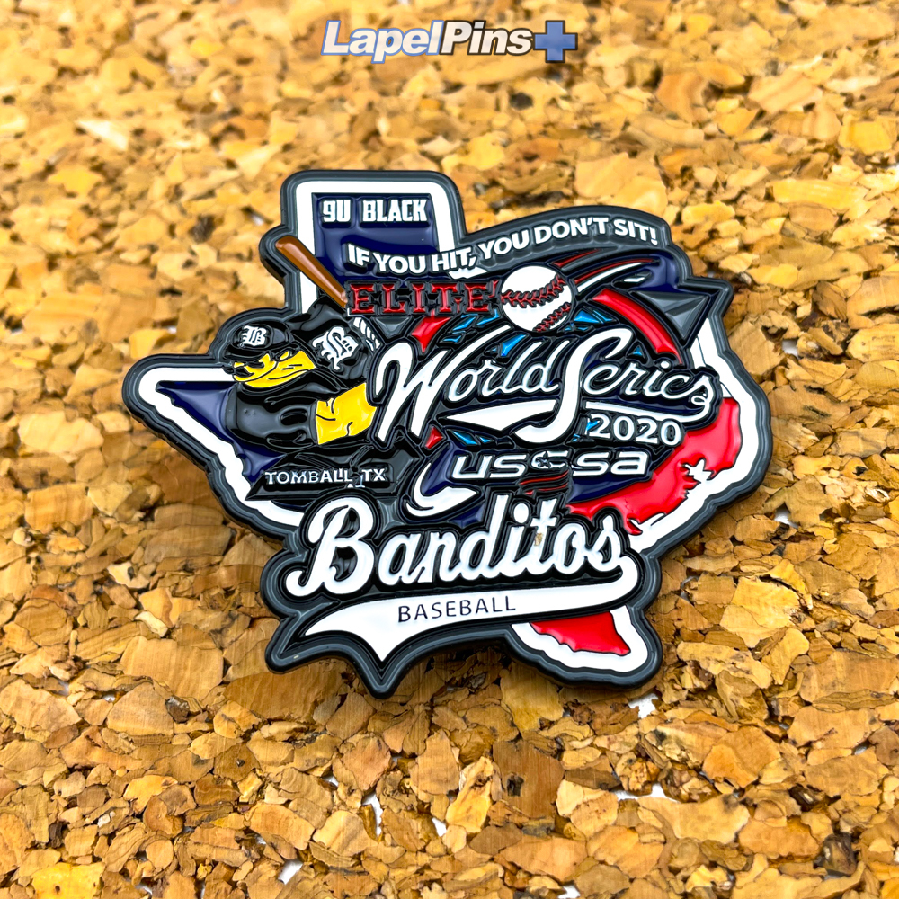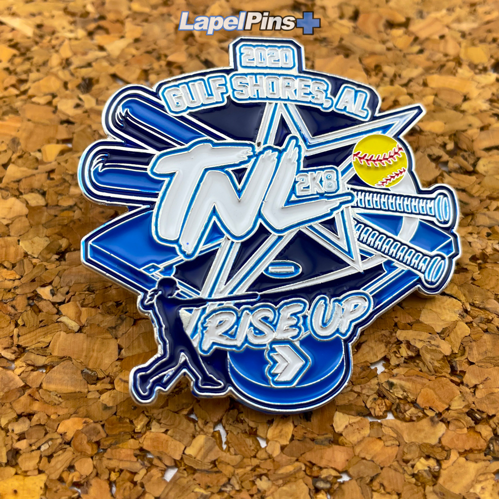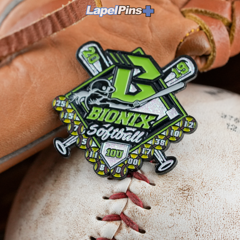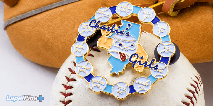 Gear up for tournament travel with unique team trading pins. We understand that not all pins are created equal in the eyes of young baseball players. Exclusivity, size and rarity really make your team's pin stand out. Our experienced sales team has the answers you need to make the right purchasing decision for your sports team, club, or organization. By incorporating your designated colors with your team mascot or logo, we are able to come up with a custom baseball trading pin design that exudes cool. Add upgrades such as glitter enamel, spinners, danglers, sliders or blinkers.